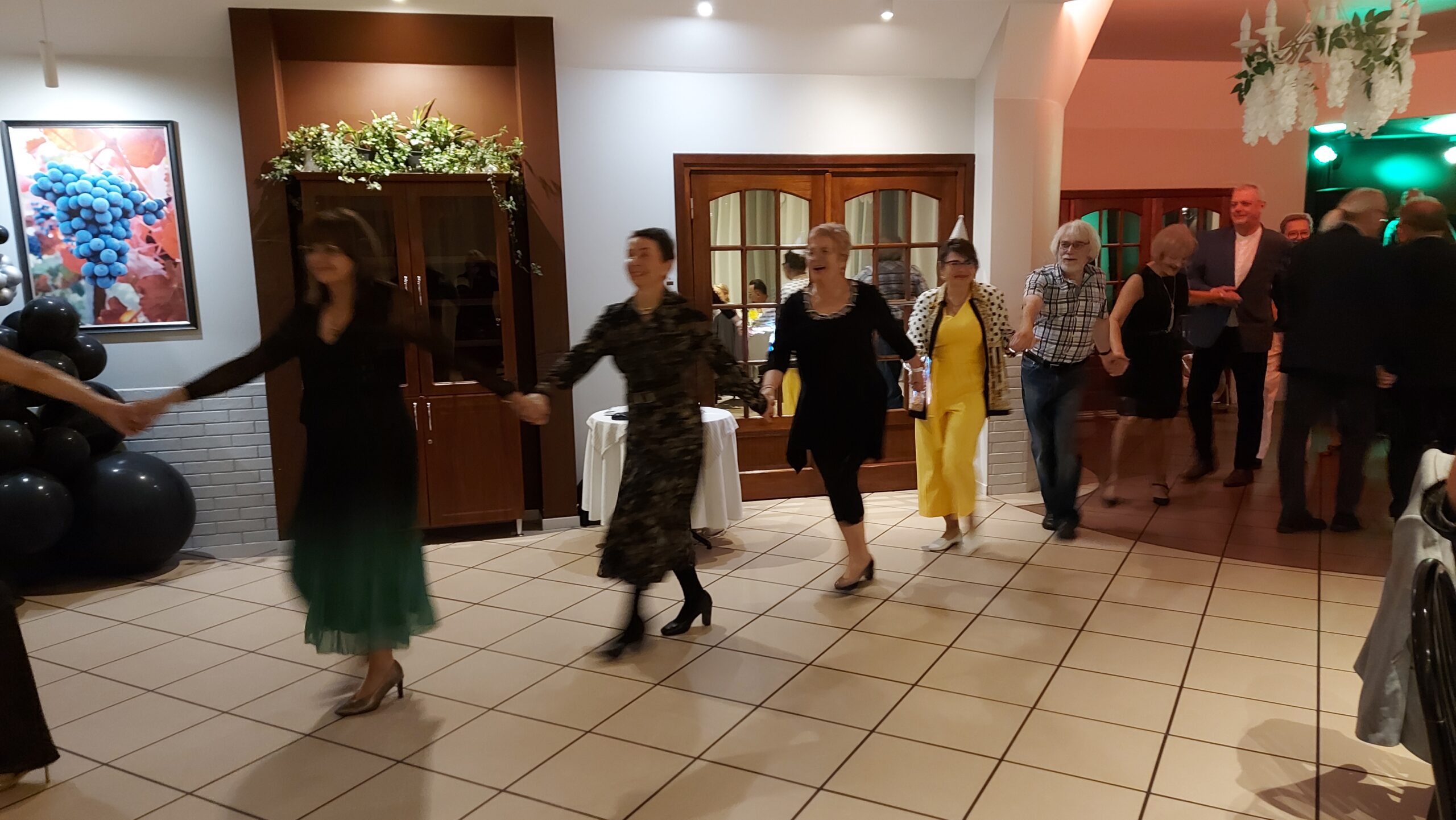DJ zagrał nie tylko nasze stare hity, ale też porwał nas wprost na parkiet. Układ taneczny do „Hey! Babe” był wydarzeniem wieczoru – trenerem i choreografem (bez umowy o dzieło) był sam DJ, który zmusił nas do wysiłku zbliżonego do WF-u z klasy maturalnej. Maciek z kl. A, który prowadził słynnego węża tanecznego (a jakże – zamaszyście, z gracją i doświadczeniem), potwierdził, że nie tylko zna rytm, ale i powitał tysiące noworodków na tym świecie, więc i z nami dał sobie radę.